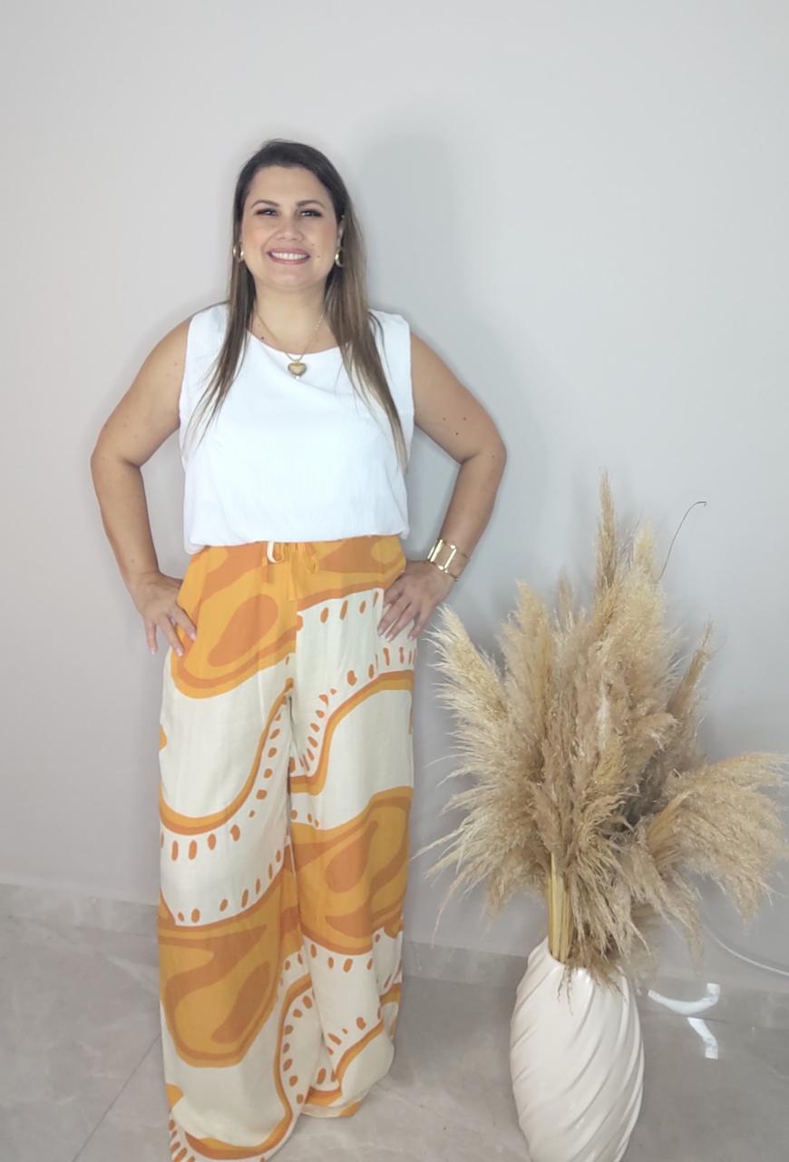 – Estilo: Pantalona ampla, que confere um ar de sofisticação e modernidade.
