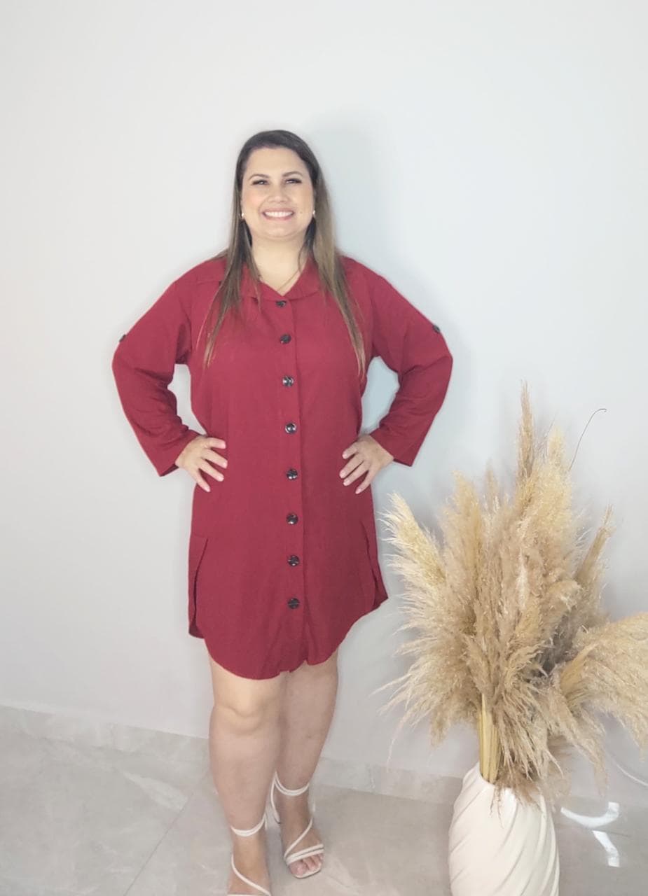 A principal característica desse modelo é o corte inspirado em camisas, com colarinho, botões frontais e uma silhueta que pode variar desde um ajuste mais justo até um corte solto. As mangas 3/4 oferecem uma cobertura ideal, tornando o vestido apropriado para diversas ocasiões, desde passeios casuais até eventos mais formais.